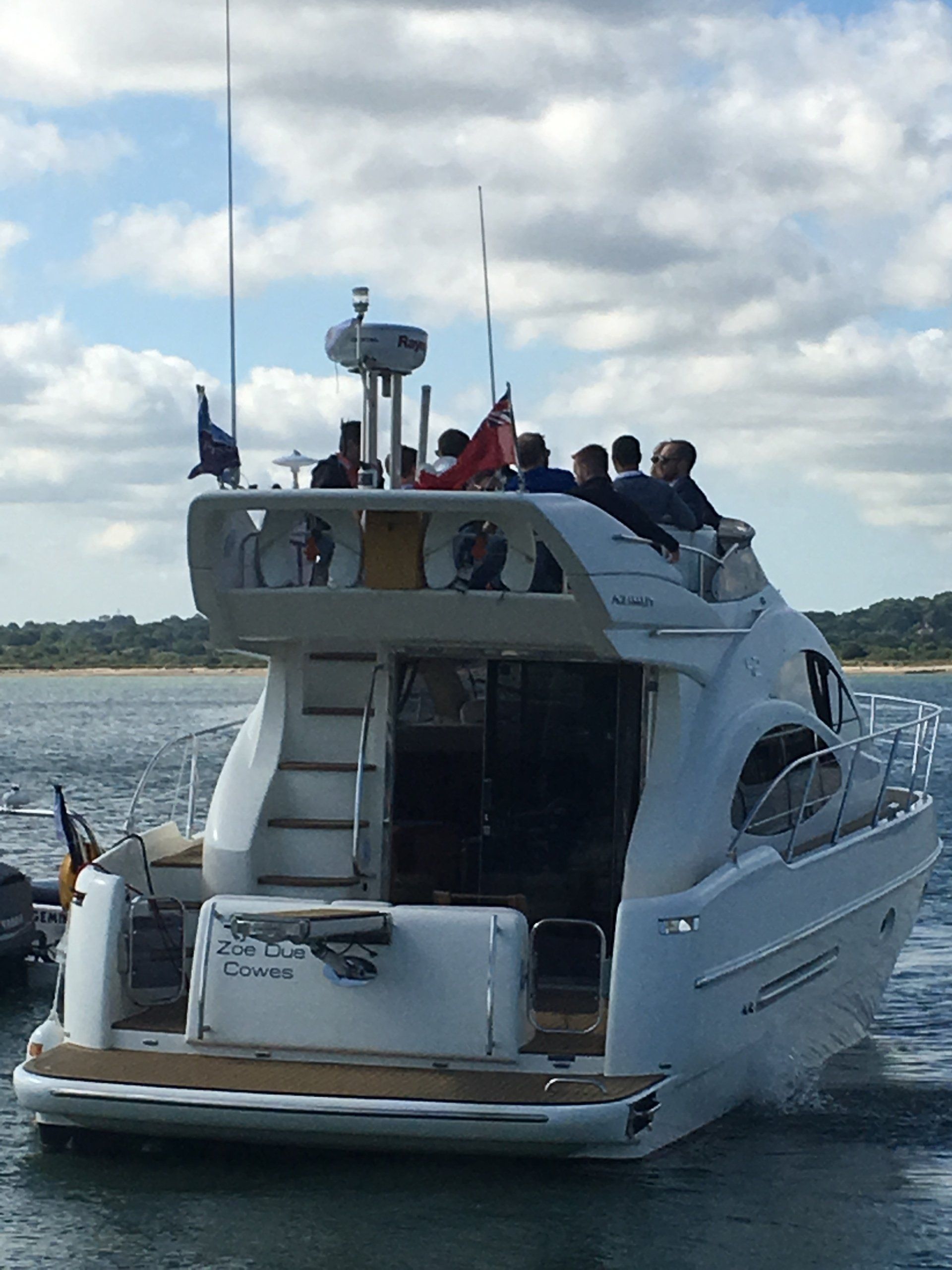 Looking for a VIP Champagne Transfer to your favourite Solent Restaurant aboard our Italian Flybridge Cruiser